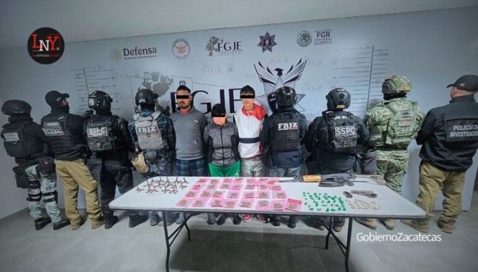Zacatecas, Zac.- Fuerzas de seguridad de los tres órdenes de gobierno detuvieron en Guadalupe, a seis personas —tres adultos y tres menores— presuntamente vinculadas con dos homicidios recientes. El operativo en la colonia Jardines de Sauceda, derivado de labores de inteligencia y videovigilancia, permitió el aseguramiento de armas, narcóticos y un vehículo.