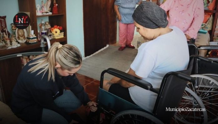 Zacatecas, Zac.- La presidenta honorífica del DIF Municipal, Karla Estrada García, realizó una jornada de entrega de aparatos funcionales a habitantes de diversas colonias y comunidades de Zacatecas. Los apoyos beneficiaron a diez personas con necesidades específicas de movilidad, en cumplimiento a la visión del alcalde Miguel Varela de mantener atención directa a grupos vulnerables.