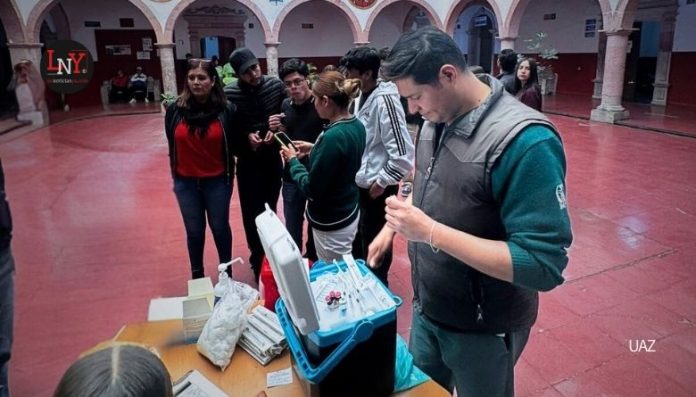 Zacatecas, Zac.- El Gobierno de Zacatecas ha suministrado 169 mil vacunas SRP y SR tras confirmarse seis casos locales de sarampión y ante el riesgo por la cercanía con Jalisco, que registra mil 183 contagios. Las autoridades de salud y la Universidad Autónoma de Zacatecas (UAZ) han activado protocolos de contención y descarte de brotes en centros escolares para frenar la propagación de un virus con un índice de contagiosidad superior al del Covid-19.